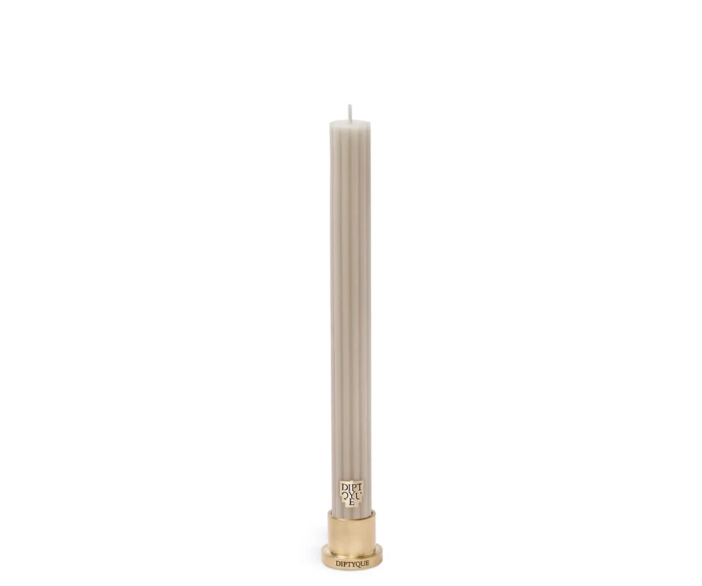 an elegant brass candleholder with a brushed gold finish accentuates the taper candle. for a unique and refined festive night.
