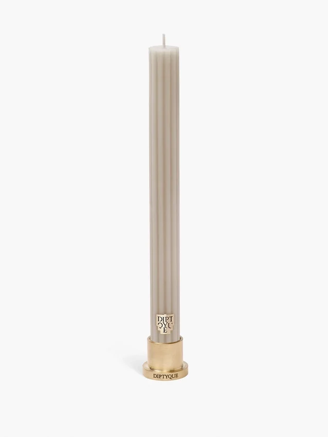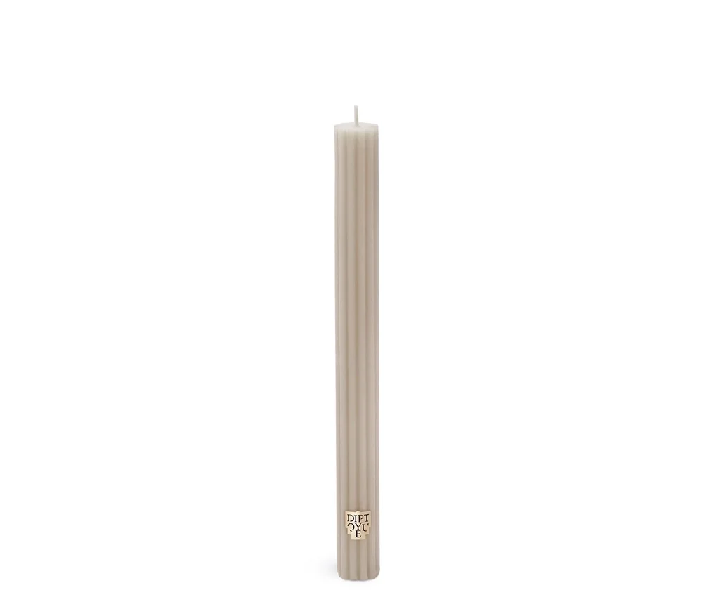 The Wood Fire (Feu de Bois) taper candle, a Diptyque variation on moulded and scented wax, brings a festive feel to the table.