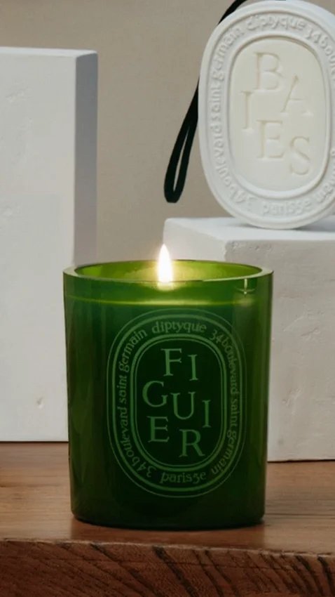 diptyque paris, diptyque, diptyque candles, figuier, colored candles
