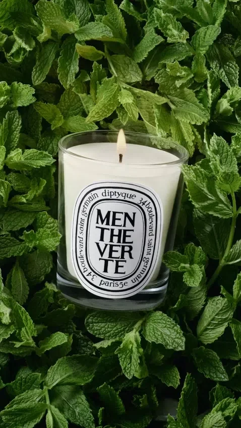 diptyque, menthe verte candle, menthe verte, diptyque menthe verte, candle, luxury candle, mint scented candle, herbal scented candle, fruity scented candle
