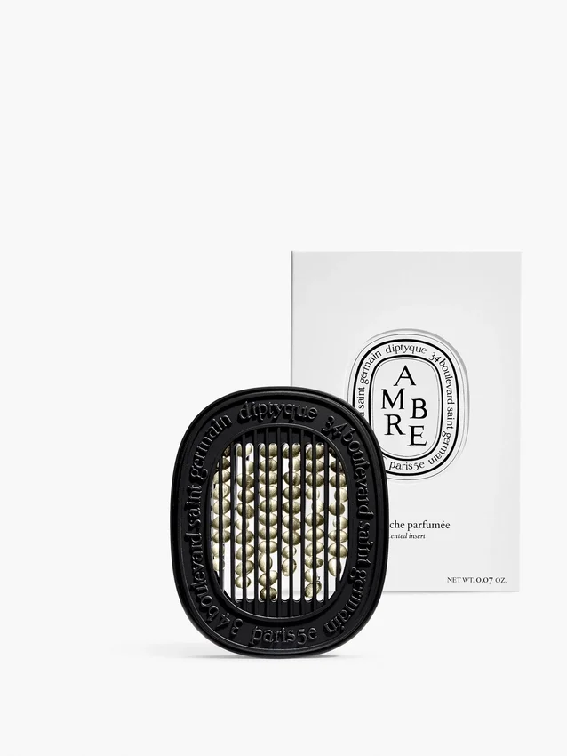 amber-scented pearls encased in an insert, releasing the heady fragrance of balms and spices, of precious, enveloping woods.