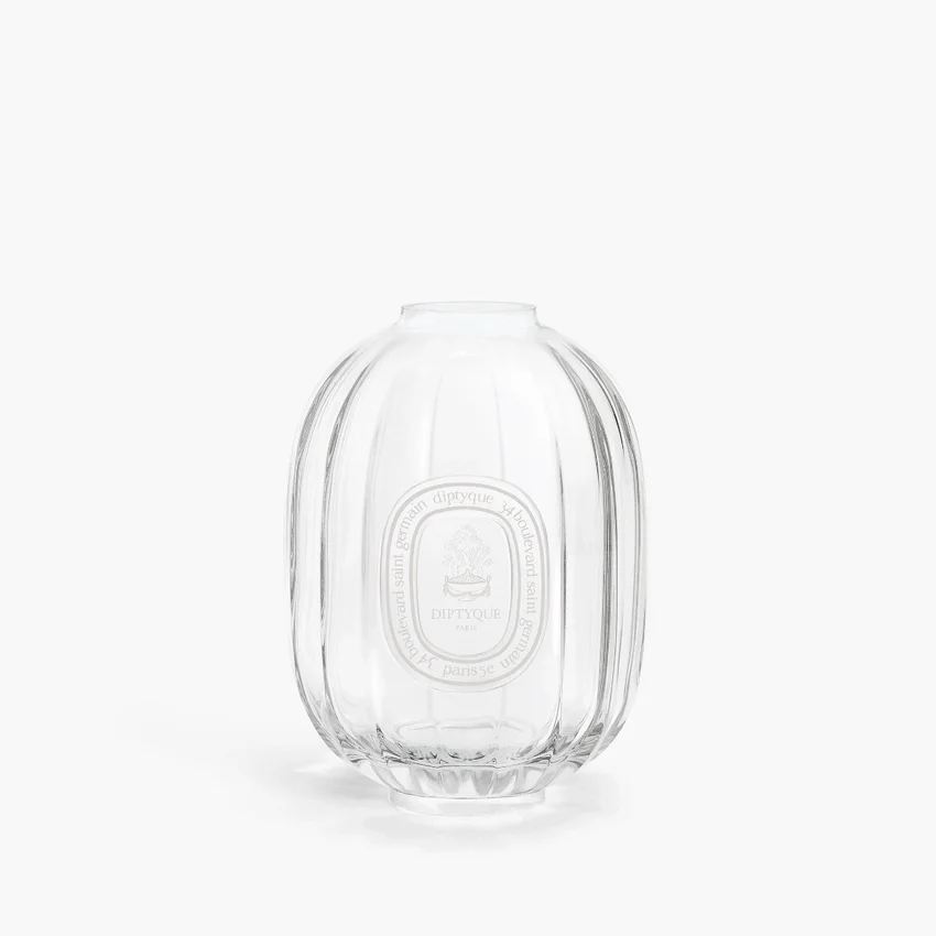 A faceted glass treasure in the iconically Diptyque oval shape, this vessel offers a visual and olfactory impression.
