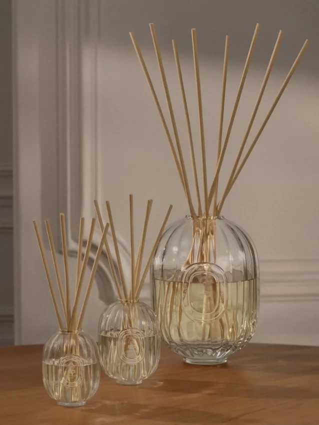 a faceted glass treasure in the iconically diptyque oval shape, this vessel offers a visual and olfactory impression.