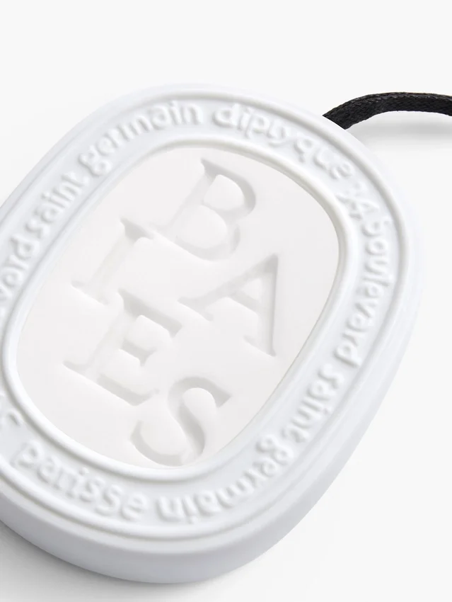 the diptyque scented oval, designed by the jean-marc gady studio, slowly diffuses its famous fragrances. each scented wax perfume diffuser engraved at its heart with the name of the scent in dancing letters, is surrounded by a white porcelain medallion, the embodiment of refined, discreet luxury. it features a sober and elegant black cotton rope in the color of the walls of the house, allowing it to be placed wherever you wish. it will release its delicious fragrances for a minimum of three months.