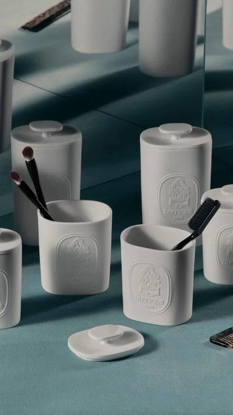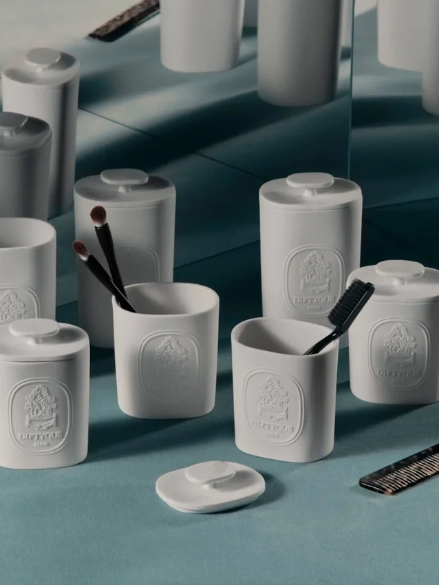 Minimalist and delicate, a close-up of the oval of the Maison emerges in the shape of this biscuit porcelain Tumbler.